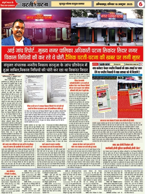 कोरिया/पटना, 21 नवंबर 2025 (घटती-घटना)। क्या अब राजनीति का अर्थ सिर्फ सत्ता, और सत्ता का अर्थ सिर्फ संरक्षण बनकर रह गया है? क्या वही नौकरशाह जिन्होंने जनता की सेवा करनी थी, अब सत्ता की ढाल लेकर खुलेआम सरकारी पैसों का बंदरबांट कर रहे हैं? और सबसे बड़ा सवाल—क्या सरकार का संदेश साफ है कि भ्रष्टाचार तुमसे होगा, लेकिन कार्यवाही तुम पर नहीं होगी? नगर पंचायत पटना का ताजा मामला यही साबित कर रहा है कि अब व्यवस्था की रीढ़ इतनी टेढ़ी हो चुकी है कि सच बोलने वाला भी अकेला पड़ जाता है और गलत करने वाला छुट्टियों पर भेजकर वापस हीरो की तरह लौटा दिया जाता है।