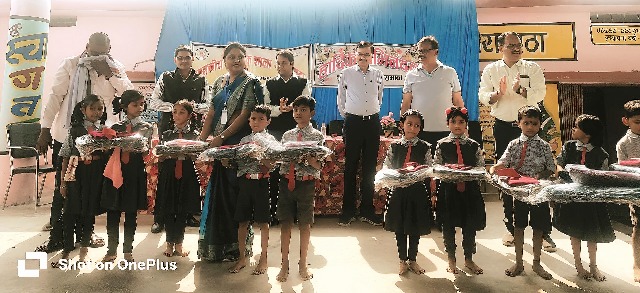 के पास स्वेटर उपलब्ध नहीं है साथ ही बच्चों के पास स्कूल बैग की भी कमी है, उन्होंने तत्काल विद्यालय को आवश्यक स्वेटर, टाई बेल्ट तथा सभी बच्चों के लिए स्कूल बैग उपलब्ध कराते हुए बच्चों की सुखद भविष्य की कामना की। इस कार्यक्रम में ग्राम के सरपंच श्री जीवन यादव , उपसरपंच श्री दिवाकर जी, गणमान्य नागरिकों के साथ साथ श्री ओम पांडेय ,जिला मिशन समन्वयक, श्री अजय नाथ संकुल प्राचार्य,डॉ मुकेश पांडे एवं डॉ अखिलेश सहायक कार्यक्रम समन्वयक समग्र शिक्षा , तथा नव पदस्थ विकास खंड शिक्षा अधिकारी भूपेंद्र कौशिक उपस्थित रहे।डॉ अखिलेश तिवारी द्वारा स्कूल डेवलपमेंट प्रोग्राम अंतर्गत विद्यालय के समग्र विकास हेतु संस्था द्वारा तैयार कार्ययोजना के अनुसार किए जा रहे कार्यों की प्रशंसा की गई। इसी अनुक्रम में डॉ मुकेश पांडे द्वारा विद्यालय में समुदाय की सहभागिता अंतर्गत इस कार्य को अनुकरणीय बताया गया। विकासखंड शिक्षा अधिकारी द्वारा विद्यालय में इस तरह के कार्यक्रम के आयोजन को प्रासंगिक बताते हुए विद्यालय के शिक्षकों को भविष्य में बेहतर कार्य हेतु प्रेरित किया गया। संकुल प्राचार्य श्री अजय नाथ द्वारा स्कूल के अन्य विद्यालयों में भी इस तरह के कार्यों को संपादित किए जाने का आव्हान किया गया , तथा 5 वी बोर्ड की तैयारी हेतु शिक्षकों को प्रेरित किया ।श्री ओम पांडेय द्वारा संस्था प्रमुख के नेतृत्व में अन्य सभी शिक्षिकाओं द्वारा विद्यालय के अकादमिक वातावरण एवं टीम वर्क की सृजन की गई।