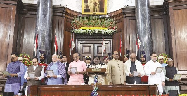 राष्ट्रपति द्रौपदी मुर्मू ने कहा, ‘संविधान दिवस के इस ऐतिहासिक अवसर पर आप सभी के बीच उपस्थित होकर मुझे बहुत खुशी हो रही है। 26 नवंबर 1949 को इसी केंद्रीय कक्ष में संविधान सभा के सदस्यों ने भारत का संविधान तैयार करने का काम पूरा किया था। इसी दिन ‘हम भारत के लोग’ ने अपने संविधान को अपनाया। स्वतंत्रता मिलने के बाद संविधान सभा ने अंतरिम संसद का काम भी किया। डॉ. भीमराव अंबेडकर, जो ड्राफ्टिंग कमेटी के चेयरमैन थे, हमारे संविधान के मुख्य निर्माताओं में से एक थे। ‘