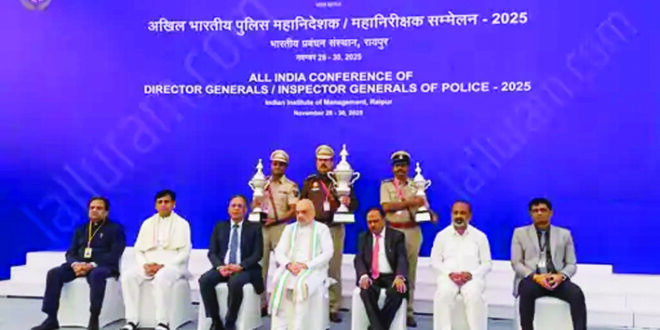रायपुर, 28 नवम्बर 2025। नवा रायपुर में IIM कैंपस में डीजीपी-आईजी कॉन्फ्रेंस में दिल्ली के गाजीपुर थाना को बेस्ट पुलिस स्टेशन का अवॉर्ड मिला। अंडमान और निकोबार के पहरगांव पुलिस स्टेशन को दूसरा और कर्नाटक के रायचूर जिले के कवितला पुलिस स्टेशन को तीसरा स्थान मिला। केंद्रीय गृहमंत्री अमित शाह ने देश के टॉप-3 पुलिस स्टेशनों को सम्मानित किया। थानों का चयन कुल 70 से ज्यादा कैटेगरी आधारित पैरामीटर्स पर किया गया। इस दौरान मंच पर राष्ट्रीय सुरक्षा सलाहकार अजीत डोभाल,रॉ चीफ पराग जैन और आईबी चीफ तपन डेका भी मौजूद रहे।