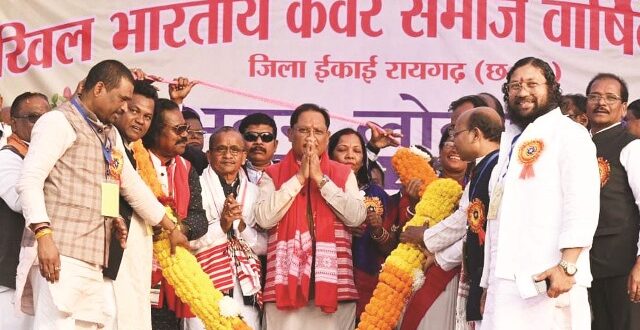 रायपुर,02 दिसम्बर 2025। मुख्यमंत्री विष्णुदेव साय रायगढ़ के बोईरदादर में आयोजित अखिल भारतीय कंवर समाज के वार्षिक सम्मेलन में मुख्य अतिथि के रूप में शामिल हुए। मुख्यमंत्री साय ने समाज की मांग पर 30 लाख रुपए की लागत से निर्मित सामुदायिक भवन के प्रथम तल का लोकार्पण किया। समाज के वरिष्ठजनों ने मुख्यमंत्री का पारंपरिक रीति-रिवाजों के साथ भव्य स्वागत एवं अभिनंदन किया। मुख्यमंत्री साय ने कंवर समाज के पुरोधाओं को नमन करते हुए कहा कि समाज का विकास शिक्षा से ही संभव है। उन्होंने कहा कि शिक्षा केवल नौकरी ही नहीं, बल्कि विभिन क्षेत्रों में सफल बनने का माध्यम भी है। हर बेटा-बेटी को शिक्षित करना ही समाज को मजबूती देगा। उन्होंने कहा कि छत्तीसगढ़ सरकार आदिवासी समाज के उत्थान और कल्याण के लिए प्रतिबद्ध है। आदिवासियों एवं क्षेत्रों के विकास के लिए सरकार द्वारा विभिन्न योजनाएं संचालित की जा रही है जिसका लाभ लोगों को मिल रहा है। उन्होंने शासन की जनकल्याणकारी योजनाओं का अधिक से अधिक लाभ उठाने का आव्हान भी किया। मुख्यमंत्री साय ने जनजातीय समाज के स्वतंत्रता संग्राम में योगदान को याद करते हुए कहा कि प्रधानमंत्री नरेंद्र मोदी ने भगवान बिरसा मुंडा की जयंती 15 नवंबर को जनजातीय गौरव दिवस घोषित कर जनजातीय समुदाय के सम्मान को नई ऊंचाई दी है। उन्होंने बताया कि आदिवासी समाज को मुख्यधारा में शामिल करने के लिए प्रधानमंत्री नरेन्द्र मोदी ने धरती आबा ग्राम उत्कर्ष और पीएम जनमन कार्यक्रम की शुरूआत की है। यह आदिवासी कल्याण के क्षेत्र में आजादी के बाद सबसे बड़ा अभियान है। उन्होंने कहा कि इन योजनाओं के माध्यम से सभी प्रकार की मूलभूत सुविधाएं जनजातीय परिवारों को उपलब्ध करायी जा रही है। इन योजनाओं से जनजातीय क्षेत्रों में तेज गति से विकास हो रहा है। मुख्यमंत्री साय ने कहा कि प्रधानमंत्री नरेंद्र मोदी ने छत्तीसगढ़ की रजत जयंती समारोह के अवसर पर रायपुर में शहीद वीर नारायण सिंह आदिवासी स्वतंत्रता संग्राम सेनानी स्मारक सह संग्रहालय का लोकार्पण किया है। संग्रहालय में छत्तीसगढ़ के वीर सेनानियों का देश के लिए योगदान जीवंत रूप में प्रदर्शित हो रहा है। यह आने वाली पीढि़यों को हमारे वीर नायकों के शौर्य और बलिदान से परिचित कराता रहेगा। यह हमारे आदिवासी समाज के लिए भी गौरव की बात है। मुख्यमंत्री साय ने छत्तीसगढ़ राज्य निर्माण के 25 वर्ष पूरे होने पर राज्य के विकास-पीडीएस प्रणाली, सड़क, बिजली, पानी, शिक्षा और स्वास्थ्य के व्यापक विस्तार का उल्लेख करते हुए पूर्व प्रधानमंत्री भारत रत्न अटल बिहारी वाजपेयी को श्रद्धांजलि दी। मुख्यमंत्री ने कहा कि राज्य निर्माण के बाद गांव-गांव तक पहुंच मार्ग और विकास की रोशन