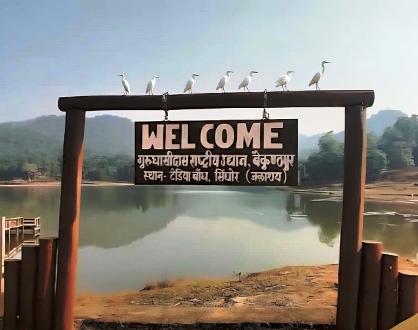 (वेलकम बोर्ड पर बैठे पक्षी)- गुरुघासीदास राष्ट्रीय उद्यान के टेडिया डेम में स्वागत पट्टी पर विराम लेते प्रवासी पक्षी सर्दियों की सुबह का अद्भुत दृश्य…