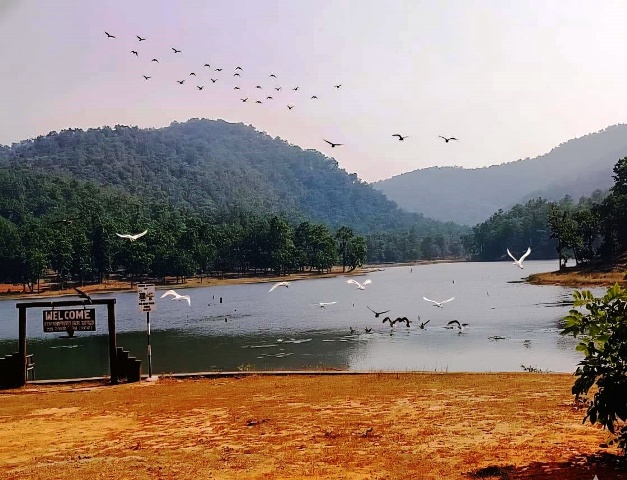 सर्दियों की कोमल हवा और डूबते सूरज की सुनहरी रोशनी के बीच रविवार की शाम सिंघोर के टेडिया जलाशय में प्रकृति मानो गीत बन गई,गुरु घासीदास राष्ट्रीय उद्यान के रामगढ़ परिक्षेत्र में बसे इस शांत जलाशय पर दो अलग-अलग झुंड में प्रवासी पक्षियों का कलरव गूंजा—और दृश्य इतना मनोहारी था मानो पर्वतीय प्रतिध्वनि में पक्षी प्रेम की धुन छेड़ रहे हों, स्थानीय लोग कहते दिखे—बड़ी दूर से आये हैं…प्यार का तोहफा लाए हैं।