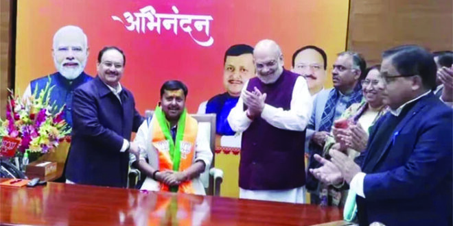 बीजेपी मुख्यालय में नए कार्यकारी अध्यक्ष पर फूल बरसाए गए