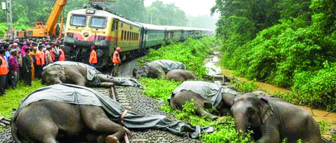 इमरजेंसी ब्रेक लगाने के बावजूद हाथी ट्रेन से टकराए