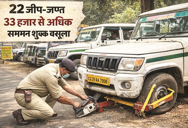 सूरजपुर,20 दिसम्बर 2025 (घटती-घटना)। जिले में परिवहन विभाग ने चेकिंग अभियान के दौरान बिना वैध फिटनेस, प्रदूषण प्रमाण पत्र, परमिट एवं बीमा के संचालित जीप टैक्सियों पर सख्त कार्रवाई की है। अभियान में 22 वाहनों के विरुद्ध कार्रवाई करते हुए 33,800 (तैंतीस हजार आठ सौ रुपये) शमन शुल्क वसूल कर शासन के खाते में जमा किया गया,परिवहन विभाग ने स्पष्ट किया कि ऐसे वाहनों का संचालन न केवल कानून के विरुद्ध है,बल्कि आम जनता के जान-माल के लिए गंभीर खतरा भी बनता है। नियमों की अनदेखी करने वाले जीप टैक्सियों के खिलाफ आगे वृहद स्तर पर जप्ती अभियान चलाया जाएगा।