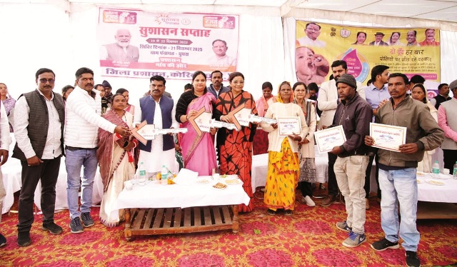 कोरिया,23 दिसम्बर 2025 (घटती-घटना)। जिले के वनांचल जनपद पंचायत सोनहत अंतर्गत ग्राम घुघरा में ‘प्रशासन गांव की ओर’ अभियान के तहत जनकल्याणकारी शिविर का आयोजन किया गया। शिविर का उद्देश्य शासन की योजनाओं को सीधे आमजन तक पहुँचाना रहा। इस अवसर पर सोनहत-भरतपुर क्षेत्र की विधायक रेणुका सिंह ने प्रधानमंत्री आवास योजना (ग्रामीण) के अंतर्गत आवास पूर्ण करने वाले हितग्राहियों को अभिनंदन पत्र एवं आवास की चाभी प्रदान कर उनका उत्साहवर्धन किया।