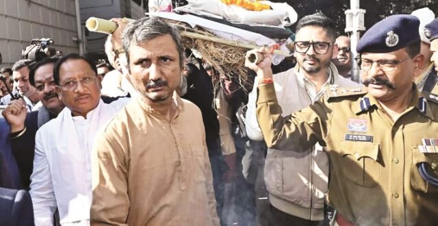रायपुर,24 दिसम्बर 2025। सीएम विष्णुदेव साय आज राजधानी रायपुर के शैलेन्द्र नगर स्थित वरिष्ठ साहित्यकार एवं ज्ञानपीठ पुरस्कार से सम्मानित स्वर्गीय विनोद कुमार शुक्ल के निवास पहुँचे और उनके अंतिम दर्शन कर उन्हें श्रद्धांजलि अर्पित की। मुख्यमंत्री ने उनके पार्थिव शरीर पर पुष्प चक्र अर्पित कर नमन किया तथा ईश्वर से दिवंगत आत्मा की शांति के लिए प्रार्थना की। इस अवसर पर मुख्यमंत्री साय ने स्वर्गीय शुक्ल के पार्थिव शरीर को कंधा देकर उन्हें भावपूर्ण अंतिम विदाई दी। उन्होंने शोक संतप्त परिजनों से भेंट कर अपनी गहरी संवेदनाएँ व्यक्त कीं तथा असंख्य पाठकों और साहित्य-प्रेमियों को इस अपार दुःख को सहन करने की शक्ति प्रदान करने की कामना की। मुख्यमंत्री साय ने कहा कि छत्तीसगढ़ की माटी से उपजे महान साहित्यकार विनोद कुमार शुक्ल के निधन से हिंदी साहित्य जगत को अपूरणीय क्षति पहुँची है। उनकी रचनाएँ संवेदनशीलता, मानवीय सरोकारों और सरल किंतु गहन अभिव्यक्ति की अनुपम मिसाल हैं। उन्होंने कहा कि शुक्ल की लेखनी ने हिंदी साहित्य को नई ऊँचाइयाँ प्रदान की।