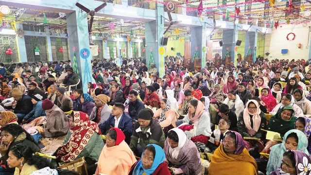 अम्बिकापुर,25 दिसम्बर 2025 (घटती-घटना)। प्रभु येशु के जन्म क्रिसमस के शुभ अवसर पर अंबिकापुर के नवापारा स्थित महा गिरजाघर में विशेष प्रार्थना सभा आयोजित की गई। रात्रि 10 बजे से धार्मिक अनुष्ठान प्रारंभ हुई जो देर रात तक चली। रात्रि 12 बजे बालक येशु के जन्म के साथ ही चर्च के घंटे बजे और आतिशबाजी शुरू हो गई। चरनी आशीष के सांथ धार्मिक अनुष्ठान की शुरुवात हुई। बिशप डॉ. अंतोनीस बड़ा की अगुवाई में फादर जार्ज ग्रे कुजूर के साथ समस्त धार्मिक अनुष्ठान मिस्सा पूजा सम्पन्न हुई। इस अवसर पर समुदाय को संबोधित करते हुए अपने संदेश में बिशप डॉ अंतोनिस बड़ा ने कहा कि इस वर्ष का क्रिसमस जागरण एक साधारण जागरण नहीं है यह एक अद्भुत एवं अनोखा जागरण है आज हम यीशु के 2025 वां वर्षगांठ मना रहे हैं। हम ईश्वर को धन्यवाद देते हैं कि उसने हम मानव को बचाने के लिए पाप के जाल से छुड़ाकर स्वर्ग ले जाने के लिए अपने इकलौते बेटे यीशु को कुंवारी माता द्वारा इस संसार में भेजा। अतः ख्रीस्त जयंती सारी मानव जाति के लिए प्रेम शांति आनंद का पर्व है। आइये इस समारोह में सहभागी होने के लिए हमने आपको तैयार करें और सारे गुनाहों के लिए माफी मांगे और अपने मन को शुद्ध करें। इस क्रम में आगे सुसमाचार का वाचन भी किया गया। इस दौरान पारा टोला से आए समाज के लोगों ने पवित्र बाइबिल पाठ का वाचन किया गया। पहला पाठ का वाचन कुंती एक्का भगवानपुर व दूसरे पाठ का वाचन डेविड एक्का ने पवित्र पाठ का वाचन कर येशु के संदेशों को दिया। रात्रि प्रार्थना सभा के दौरान फा.अनुरंजन व फा. जॉन जयसवाल की अगुवाई में युवक युवतिओं द्वारा अनुष्ठान के बीच-बीच में भक्तिमय गीतों से एैसा समा बांधा की लोग भक्तिमय गीतों में रम गए। कार्यक्रम के अंतिम चरण में परम प्रसाद का वितरण व बालक येशु का चुंबन किया गया। बड़े बुजुर्गों के लिए घर में बैठ कर लाइव प्रसारण के माध्यम से धार्मिक अनुष्ठान में शामिल होने की निःशुल्क व्यवस्था जेरीन जोसेफ ने उपलब्ध कराई थी।