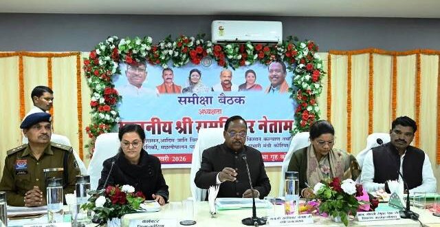कोरिया,04 जनवरी 2026(घटती-घटना)। रविवार को कलेक्ट्रेट सभाकक्ष,बैकुण्ठपुर में प्रदेश के आदिम जाति विकास, कृषि विकास एवं किसान कल्याण, जैव प्रौद्योगिकी, मछली पालन एवं पशुधन मंत्री तथा कोरिया जिले के प्रभारी मंत्री रामविचार नेताम की अध्यक्षता में विभागवार कार्यों की प्रगति की समीक्षा बैठक आयोजित की गई,बैठक में रेणुका सिंह, विधायक भरतपुर–सोनहत, विशेष रूप से उपस्थित रहीं, बैठक के दौरान प्रभारी मंत्री श्री नेताम ने जिले में संचालित विभिन्न नवाचारों की जानकारी ली। कलेक्टर चंदन त्रिपाठी ने कोरिया मोदक लड्डू, सोनहनी शहद उत्पादन सहित जिले में चल रहे नवाचारों की विस्तृत जानकारी प्रस्तुत की।