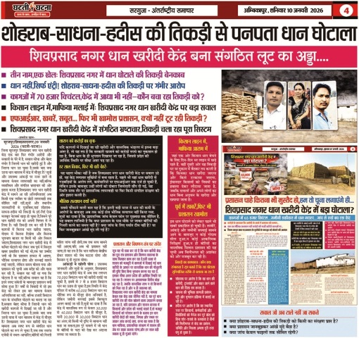 पूर्व में प्रकाशित खबरों से हिला प्रशासन- गौरतलब है कि दैनिक घटती घटना ने 07 जनवरी 2026 के अंक में शिवप्रसाद नगर धान खरीदी केंद्र में “बड़ा घोटाला?” शीर्षक से खबर प्रकाशित की थी, जिसमें यह बताया गया था कि कागजों में 65 हजार मि्ंटल धान की खरीदी दर्शाई गई है, जबकि गोदामों में वास्तविक भंडारण नदारद या बेहद कम प्रतीत हो रहा है, इसके बाद 10 जनवरी 2026 के अंक में प्रकाशित दूसरी रिपोर्ट में इस केंद्र को “संगठित लूट का अड्डा” करार देते हुए धान खरीदी से जुड़े पूरे तंत्र, कथित तिकड़ी और संरक्षण देने वाले सिस्टम पर गंभीर सवाल उठाए गए थे। इन्हीं खबरों के दबाव के चलते प्रशासन को जांच के लिए मैदान में उतरना पड़ा।