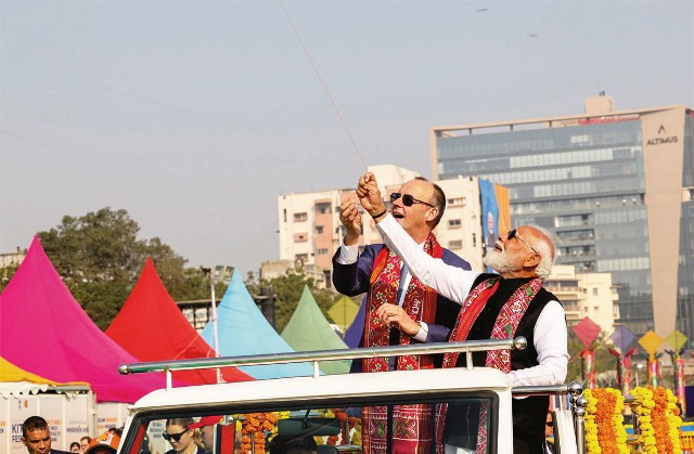 अहमदाबाद में अंतरराष्ट्रीय पतंग महोत्सव 2026 का उद्घाटन,मोदी-मर्ज ने साथ उड़ाई पतंग