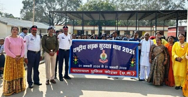 कोरबा,23 जनवरी 2026 (घटती-घटना)। कोरबा जिले के आत्मानंद विद्यालय पंप हाउस परिसर में यातायात जागरूकता कार्यक्रम का आयोजन किया गया, जिसमें सड़क सुरक्षा और यातायात नियमों की महत्वपूर्ण जानकारी दी गई। कार्यक्रम में विद्यालय की प्रिंसिपल प्रभा सिंह, गणमान्य नागरिक वक्ति राम,किशोर यादव (पूर्व पार्षद),विद्यालय के छात्र-छात्राएं सहित लगभग 250 लोग उपस्थित रहे। कार्यक्रम के दौरान एएसआई मनोज राठौर ने उपस्थित विद्यार्थियों और नागरिकों को यातायात नियमों के प्रति जागरूक किया। उन्होंने हेलमेट और सीट बेल्ट के उपयोग, गति सीमा का पालन, मादक द्रव्य पदार्थो का सेवन कर नशे में वाहन न चलाने, मोबाइल फोन का प्रयोग करते हुए वाहन न चलाने तथा सड़क पार करते समय सावधानियों जैसे महत्वपूर्ण विषयों पर विस्तार से जानकारी दी। एएसआई श्री राठौर ने कहा कि सड़क दुर्घटनाओं को रोकने के लिए प्रत्येक नागरिक की जिम्मेदारी है कि वह यातायात नियमों का पालन करे और दूसरों को भी इसके लिए प्रेरित करे। विशेष रूप से विद्यार्थियों को कम उम्र से ही यातायात नियमों की जानकारी होना आवश्यक है, ताकि वे भविष्य में जिम्मेदार नागरिक बन सकें। कार्यक्रम में उपस्थित अतिथियों ने भी यातायात जागरूकता ऐसे आयोजनों की सराहना की और कहा कि इस प्रकार के कार्यक्रमों से समाज में सड़क सुरक्षा के प्रति सकारात्मक सोच विकसित होती है। अंत में सभी उपस्थित लोगों ने यातायात नियमों का पालन करने का संकल्प लिया।