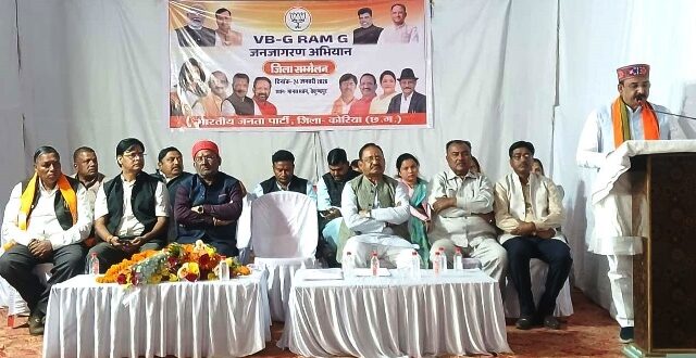 जिला मुख्यालय स्थित मानस भवन बैकुण्ठपुर में भारतीय जनता पार्टी द्वारा विकसित भारत जी राम जी जनजागरण अभियान के अंतर्गत जिला स्तरीय सम्मेलन का आयोजन किया गया। कार्यक्रम का शुभारंभ अतिथियों द्वारा भारत माता, डॉ. श्यामा प्रसाद मुखर्जी एवं पं. दीनदयाल उपाध्याय के छायाचित्र पर दीप प्रज्ज्वलन कर किया गया।