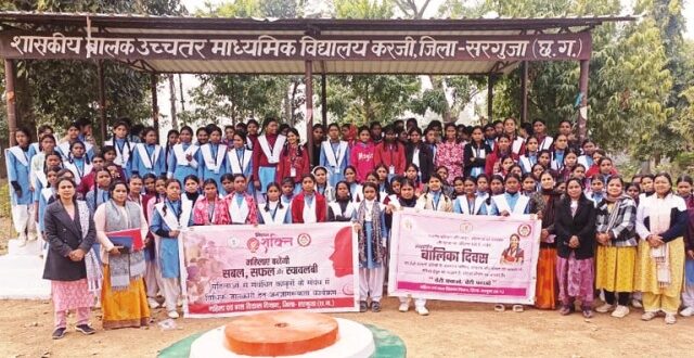 अम्बिकापुर,29 जनवरी 2026 (घटती-घटना)। राष्ट्रीय बालिका दिवस के अवसर पर जिला महिला सशक्तिकरण केंद्र (हब), महिला एवं बाल विकास विभाग, जिला सरगुजा द्वारा बेटी बचाओ-बेटी पढ़ाओ योजना के अंतर्गत एक विशेष जागरूकता कार्यक्रम का आयोजन शासकीय कन्या उच्चतर माध्यमिक विद्यालय करजी में किया गया। यह कार्यक्रम जिला कलेक्टर श्री अजीत वसंत के निर्देशानुसार तथा जिला कार्यक्रम अधिकारी श्री जे.आर. प्रधान के मार्गदर्शन में आयोजित हुआ। कार्यक्रम का उद्देश्य बालिकाओं को शिक्षा, स्वास्थ्य, पोषण और सुरक्षा के प्रति जागरूक करना था। कार्यक्रम में बालिकाओं को लैंगिक समानता के महत्व, जीवन में लक्ष्य निर्धारित कर शिक्षा पर ध्यान केंद्रित करने की प्रेरणा दी गई। साथ ही संतुलित आहार, एनीमिया की रोकथाम और मासिक धर्म स्वच्छता जैसे महत्वपूर्ण विषयों पर विस्तृत जानकारी प्रदान की गई। इस दौरान बालिकाओं को सेनेटरी पैड भी वितरित किए गए। सुरक्षा एवं अधिकारों के प्रति जागरूकता बढ़ाने के लिए 181 सखी वन स्टॉप सेंटर, चाइल्ड हेल्पलाइन 1098,पॉक्सो अधिनियम,साइबर क्राइम से बचाव, बाल श्रम निषेध तथा विभागीय योजनाओं की जानकारी भी साझा की गई। इस आयोजन के माध्यम से बालिकाओं में आत्मविश्वास, जागरूकता और सशक्तिकरण की भावना को प्रोत्साहन मिला। कार्यक्रम में मिशन शक्ति से जिला समन्वयक श्रीमती नूतन सिन्हा, वित्तीय साक्षरता समन्वय विशेषज्ञ सुश्री नेहा सिंह, जिला विधिक सह परिविक्षा अधिकारी सुमंती खाखा, विद्यालय की शिक्षिकाएं एवं बड़ी संख्या में छात्राएं उपस्थित रहीं।