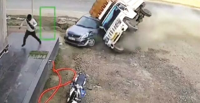 सूरजपुर 30 जनवरी 2026 (घटती-घटना)। जिले में शुक्रवार को एक बेहद अजीबो-गरीब और चौंकाने वाली सड़क दुर्घटना सामने आई है, जिसने राहगीरों और स्थानीय लोगों को दहला कर रख दिया। इस सनसनीखेज हादसे का सीसीटीवी फुटेज सामने आया है, जिसमें साफ देखा जा सकता है कि किस तरह तेज रफ्तार में आ रही एक मालवाहक पिकअप वाहन अचानक अनियंत्रित होकर उछलती हुई चलती कार के ऊपर जा गिरती है। यह पूरी घटना कुछ ही सेकेंड में घटी, लेकिन इसके परिणाम बेहद गंभीर रहे। जानकारी के अनुसार यह हादसा राष्ट्रीय राजमार्ग-43 (एनएच-43) पर बिश्रामपुर थाना क्षेत्र अंतर्गत एस्सार पेट्रोल पंप के पास हुआ। स्विफ्ट डिजायर कार सूरजपुर से बिश्रामपुर की ओर जा रही थी। जैसे ही कार पेट्रोल पंप की ओर मुड़ी, उसी समय अंबिकापुर की तरफ से तेज रफ्तार में आ रही मालवाहक ्रद्यह्यश क्रद्गड्डस्र – कुरुषनार में विद्यार्थियों की सुविधा के लिए बनेगा अतिरिक्त कक्ष पिकअप वाहन अचानक अनियंत्रित हो गई। पिकअप वाहन सड़क पर उछलते हुए सीधे सामने से आ रही स्विफ्ट डिजायर कार के ऊपर पलट गई। सीसीटीवी फुटेज में हादसे का भयावह दृश्य स्पष्ट रूप से नजर आता है। फुटेज में देखा जा सकता है कि पिकअप वाहन हवा में उछलकर कार के ऊपर चढ़ जाती है और कुछ पल तक कार के ऊपर ही पलटी रहती है। टक्कर इतनी जोरदार थी कि कार बुरी तरह क्षतिग्रस्त हो गई और उसका चालक केबिन के अंदर ही फंस गया। हादसे के तुरंत बाद मौके पर अफरा-तफरी मच गई। आसपास मौजूद लोगों ने तुरंत पुलिस और एंबुलेंस को सूचना दी। कार चालक वाहन के अंदर बुरी तरह फंसे हुए थे,जिन्हें बाहर निकालना आसान नहीं था। बाद में कटर मशीन की मदद से कार को काटकर चालक को बाहर निकाला गया। गंभीर रूप से घायल कार चालक को तत्काल अस्पताल पहुंचाया गया,जहां उनका इलाज जारी है। इस भीषण हादसे में गनीमत यह रही कि पिकअप वाहन का चालक टक्कर के वक्त ही वाहन से बाहर निकल गया,जिससे उसकी जान बच गई। हालांकि हादसे के कारण कुछ समय के लिए एनएच-43 पर यातायात भी बाधित हो गया।