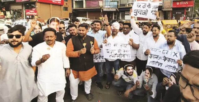 जयस्तंभ चौक पर भाजपा मंत्रियों का मुखौटा पहनकर की भाजपा के खिलाफ नारेबाजी