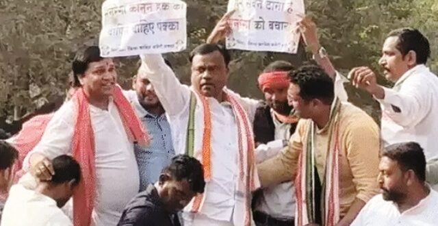 मनरेगा-धान घोटाले की जांच की मांग तख्तियां-बैनर लेकर कलेक्टर कार्यालय का किया घेराव