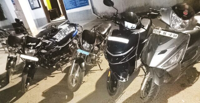 जुआ खेलने की सूचना पर पुलिस की रेड,आरोपी फरार,5 बाइक जब्त
