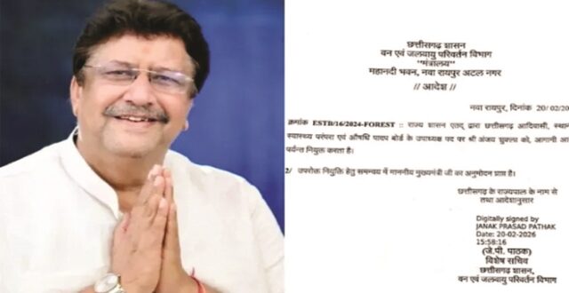 रायपुर,20 फरवरी 2026। छत्तीसगढ़ शासन के वन एवं जलवायु परिवर्तन विभाग ने एक महत्वपूर्ण प्रशासनिक आदेश जारी करते हुए अंजय शुक्ला को बड़ी जिम्मेदारी सौंपी है। जारी आदेश के अनुसार उन्हें छत्तीसगढ़ आदिवासी, स्थानीय स्वास्थ्य परंपरा एवं औषधि पादप बोर्ड के उपाध्यक्ष पद पर नियुक्त किया गया है। मंत्रालय (महानदी भवन) से 20 फरवरी 2026 को जारी इस आदेश में स्पष्ट किया गया है कि अंजय शुक्ला की यह नियुक्ति आगामी आदेश पर्यन्त प्रभावी रहेगी।