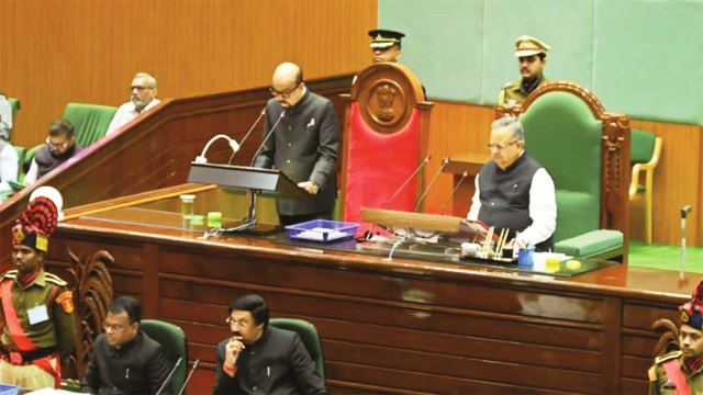रायपुर,23 फरवरी 2026। छत्तीसगढ़ विधानसभा बजट सत्र की शुरुआत हो चुकी है। पहले दिन सदन में राज्यपाल का अभिभाषण हुआ,जिसमें उन्होंने अपनी सरकार के विकास कार्यों के बारे में जानकारी दी। उनके मुताबिक रायपुर में सुपर स्पेशलिटी हॉस्पिटल बनेगा और पिछले दो सालों में 532 नक्सली न्यूट्रलाइज्ड किए जा चुके हैं। लंबे समय तक जेल में रहने के बाद सदन पहुंचे पूर्व मंत्री कवासी लखमा ने भाजपा नेताओं से गले मिलकर मुलाकात की। उन्होंने अजय चंद्राकर,रामविचार नेताम और धर्मजीत सिंह को गले लगाया। इस दौरान चंद्राकर ने लखमा की पीठ थप-थपाई। 25 फरवरी को इस अभिभाषण पर चर्चा होगी। वित्तमंत्री ओ. पी. चौधरी ने आर्थिक सर्वेक्षण रिपोर्ट पेश की। बजट,वित्तीय वर्ष 2026-27 का, 24 फरवरी को पेश किया जाएगा।