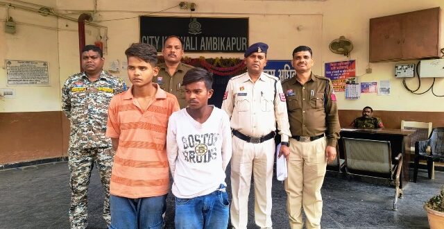 अंबिकापुर,23 फरवरी 2026 (घटती-घटना)। देशी कट्टा व कारतूस बेचने के फिराक में घूम रहे स्कूटी सवार एक नाबालिग सहित तीन आरोपियों को कोतवाली पुलिस ने गिरफ्तार किया है। पुलिस ने गिरफ्तार आरोपियों के खिलाफ कार्रवाई कर जेल दाखिल कर दिया है। जानकारी के अनुसार 22 फरवरी को कोतवाली पुलिस को जानकारी मिली की केनापारा स्थित एक मेन्स पार्लर के पास तीन लडक¸े देशी कट्टा व कारतूस बेचने के फिराक में घूम रहे हैं। सूचना पर पुलिस मौके पर पहुंचकर स्कूटी सवार एक नाबालिग सहित आरोपी पियुष दुबे पिता मनीष दुबे उम्र 18 वर्ष निवासी बौरीपारा व आकाश दास पिता स्व सहेन्दर दास उम्र 19 वर्ष निवासी केनाबांध बंगाली चौक को गिरफ्तार किया है। पुलिस ने इनके कब्जे से 1 नग देशी कट्टा व 1 जिन्दा कारतूस जब्त किया है। दोनों आरोपी देशी कट्टा व जिन्दा कारतूस बेचने के फिराक में थे। पुलिस ने घटना में प्रयुक्त स्कूटी को भी जब्त किया है। पुलिस ने दोनों आरोपियों के खिलाफ धारा 25, 27 आर्म्स एक्ट एवं 3(5) बीएनएस के तहत कार्रवाई कर जेल दाखिल कर दिया है।