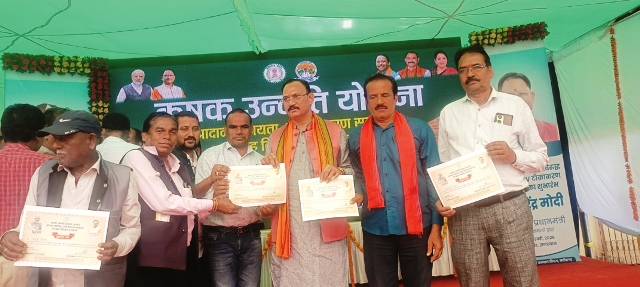 खड़गवां,01 मार्च 2026 (घटती-घटना)। होली पर्व से पहले प्रदेश सरकार ने किसानों को बड़ी सौगात देते हुए आदान सहायता राशि सीधे उनके बैंक खातों में अंतरित की, खड़गवां विकासखंड में आयोजित कृषक उन्नति योजना अंतर्गत आदान सहायता राशि वितरण समारोह सह किसान सम्मेलन में प्रदेश के स्वास्थ्य मंत्री श्याम बिहारी जयसवाल ने कहा कि ‘छत्तीसगढ़ की पहचान उसके अन्नदाता किसान हैं, उनकी समृद्धि और सम्मान हमारी सरकार की सर्वोच्च प्राथमिकता है, यह राशि केवल आर्थिक सहायता नहीं, बल्कि किसानों के विश्वास का सम्मान है।’ कार्यक्रम में जिला पंचायत सदस्य प्रिया मसराम, जनपद सदस्य श्याम बाई मरकाम, वीरेन्द्र करियाम, धर्मपाल, रामप्रसाद गुप्ता,धनंजय पाण्डेय सहित कई जनप्रतिनिधि,सरपंच और बड़ी संख्या में किसान उपस्थित रहे। समारोह स्थल पर उत्सव जैसा माहौल देखने को मिला।