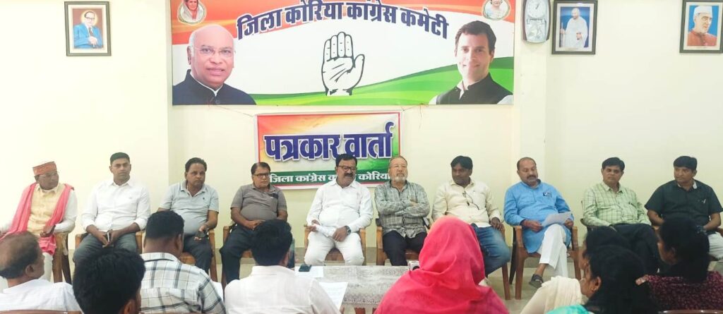 मनेंद्रगढ़/बैकुंठपुर 08 मार्च 2026 (घटती-घटना)। प्रदेश में बढ़ते नशे के कारोबार और दुर्ग जिले में सामने आए अवैध अफीम खेती के मामले को लेकर कांग्रेस ने भाजपा सरकार पर तीखा हमला बोला है, जिला कांग्रेस कमेटी कोरिया द्वारा आयोजित प्रेस वार्ता में कांग्रेस नेताओं ने आरोप लगाया कि प्रदेश में नशीले पदार्थों का अवैध कारोबार तेजी से फैल रहा है और सरकार इसे रोकने में पूरी तरह विफल साबित हो रही है,राजीव भवन स्थित कांग्रेस कार्यालय में आयोजित पत्रकार वार्ता में कांग्रेस नेताओं ने कहा कि प्रदेश में नशीली दवाइयों, प्रतिबंधित गोलियों, गांजा, अफीम और अन्य मादक पदार्थों का नेटवर्क लगातार फैल रहा है, जिससे युवा पीढ़ी नशे की गिरफ्त में जाती दिखाई दे रही है। पत्रकारवार्ता में जिला कांग्रेस अध्यक्ष प्रदीप गुप्ता के अलावा पूर्व जिला अध्यक्ष नजीर अजहर, पीसीसी सदस्य योगेश शुक्ला, जिला कोषाध्यक्ष अशोक जायसवाल, उपाध्यक्ष प्रवीर भट्टाचार्य, हेमसागर यादव, बिहारी लाल राजवाड़े, भूपेंद्र यादव, आशीष यादव, कृष्ण कुमार राजवाड़े, अनिल जायसवाल, यूसुफ इराकी, आशीष डबरे, दीपक गुप्ता, राजीव गुप्ता, जाग्रत कुर्रे, रियाजउद्दीन, एजाज गुड्डू, एस.एन. मोदी, संजोती मरकाम, अन्नपूर्णा सिंह, चांदनी सोनी सहित बड़ी संख्या में कांग्रेस कार्यकर्ता उपस्थित रहे।