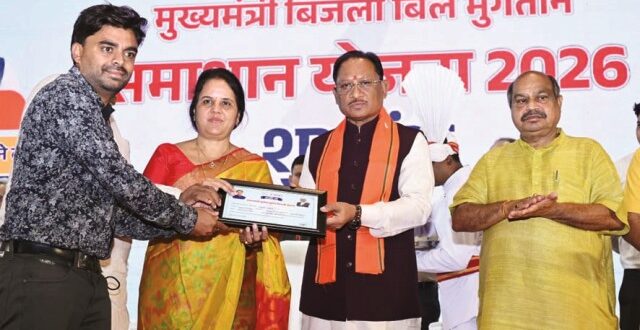 रायपुर,12 मार्च 2026। मुख्यमंत्री विष्णु देव साय ने राजधानी रायपुर के पंडित जवाहरलाल नेहरू स्मृति चिकित्सालय स्थित सभागार से मुख्यमंत्री बिजली बिल भुगतान समाधान योजना 2026 का शुभारंभ किया। इस अवसर पर उन्होंने योजना का लाभ लेने वाले उपभोक्ताओं को प्रमाण पत्र प्रदान किया और अधिक से अधिक लोगों से योजना का लाभ लेने की अपील की। साथ ही मुख्यमंत्री विष्णु देव साय ने प्रधानमंत्री सूर्यघर मुफ्त बिजली योजना के अंतर्गत 2 हजार 931 हितग्राहियों को 8 करोड़ 79 लाख रुपए की सब्सिडी भी अंतरित की। मुख्यमंत्री साय ने कहा कि बिजली आज हमारी मूलभूत जरूरतों में शामिल हो चुकी है और इसके बिना जीवन की कल्पना संभव नहीं है। कई परिवार आर्थिक कारणों से समय पर बिजली बिल का भुगतान नहीं कर पाते, जिससे सरचार्ज के कारण बकाया राशि बढ़ जाती है और पूरा भुगतान करना कठिन हो जाता है। उन्होंने कहा कि उपभोक्ताओं की इसी समस्या को ध्यान में रखते हुए राज्य सरकार ने समाधान योजना शुरू की है, जिससे उन्हें बड़ी राहत मिलेगी। मुख्यमंत्री ने कहा कि समाधान योजना के माध्यम से लंबे समय से बिजली बिल का भुगतान नहीं कर पाने वाले प्रदेश के निम्न एवं मध्यम आय वर्ग तथा कृषि उपभोक्ताओं को राहत देने की पहल की गई है। योजना के तहत प्रदेश के 28 लाख 42 हजार उपभोक्ताओं को कुल 757 करोड़ रुपए की राहत दी जाएगी। मुख्यमंत्री ने कहा कि प्रधानमंत्री नरेंद्र मोदी के नेतृत्व में वर्ष 2014 के बाद देश के लगभग 18 हजार गांवों तक बिजली पहुंचाई गई, जिससे आजादी के बाद से अंधेरे में रहे गांव भी रोशन हुए। मुख्यमंत्री ने बताया कि प्रदेश में हमारे अपने संसाधनों से लगभग 30 हजार मेगावाट बिजली का उत्पादन किया जा रहा है और प्रदेशवासियों को निर्बाध बिजली आपूर्ति सुनिश्चित करने के लिए सरकार प्रतिबद्ध है। मुख्यमंत्री ने बताया कि कोरोना काल में आर्थिक कठिनाइयों के कारण कई उपभोक्ता बिजली बिल का भुगतान नहीं कर पाए थे, जिससे बकाया राशि बढ़ गई थी। राज्य सरकार ने उपभोक्ताओं की इस परेशानी को समझते हुए समाधान योजना लागू की है। मुख्यमंत्री साय ने कहा कि प्रधानमंत्री सूर्यघर मुफ्त बिजली योजना के प्रति प्रदेश में लोगों की रुचि लगातार बढ़ रही है और अब तक लगभग 36 हजार लोग इससे जुड़ चुके हैं। मुख्यमंत्री ने यह भी कहा कि महिला स्व सहायता समूहों द्वारा सोलर पैनल वेंडर के रूप में कार्य किया जाना एक सकारात्मक पहल है। मुख्यमंत्री ने नागरिकों से बिजली की बचत करने और घरेलू बिजली के अनावश्यक उपयोग से बचने की अपील की। मुख्यमंत्री ने ऊर्जा विभाग के अधिकारियों को समाधान योजना के लिए बधाई देते हुए निर्देश दिए कि शिविर लगाकर और व्यापक प्रचार-प्रसार के माध्यम से अधिक से अधिक उपभोक्ताओं को समाधान योजना स