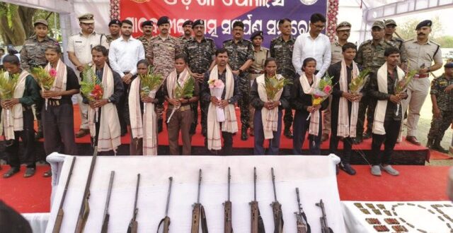 रायपुर,15 मार्च 2026। ओडिशा में माओवादी संगठन को एक बार फिर से बड़ा झटका लगा है। कालाहांडी जिले के भवानीपटना में 11 माओवादियों ने पुलिस के सामने आत्मसमर्पण किया। इन माओवादियों पर कुल मिलाकर 63 लाख 25 हजार रुपये का इनाम घोषित था। इससे पहले 11 मार्च को बस्तर में दंडकारण्य स्पेशल जोनल कमेटी (डीकेएसजेसी) से जुड़े 108 माओवादी कैडरों ने हिंसा का रास्ता छोड़कर आत्मसमर्पण किया था, जिन पर 3 करोड़ 29 लाख रुपये का इनाम था। इसी दौरान ओडिशा में भी 10 माओवादियों ने आत्मसमर्पण किया, जिन पर कुल 1 करोड़ 65 लाख 62 हजार रुपये का इनाम घोषित था। बताया कि सुरक्षा बलों की टीम लंबे समय से इनकी तलाश में जुटी हुई थी। ये सभी आत्मसमर्पित माओवादी रायगढ़ा घुमसार एरिया कमेटी में सक्रिय थे और कई नक्सली गतिविधियों में शामिल रहे हैं। रविवार को भवानीपटना में वरिष्ठ पुलिस अधिकारियों की मौजूदगी में सभी माओवादियों ने अपने हथियार डाले हैं। आत्मसमर्पण के दौरान वे अपने साथ एके-47, इंसास और एसएलआर सहित कुल 11 हथियार भी लेकर आए। सुरक्षा एजेंसियों का कहना है कि लगातार चल रहे ऑपरेशन और सरकार की पुनर्वास नीति के कारण माओवादी अब मुख्यधारा में लौटने का रास्ता चुन रहे हैं।