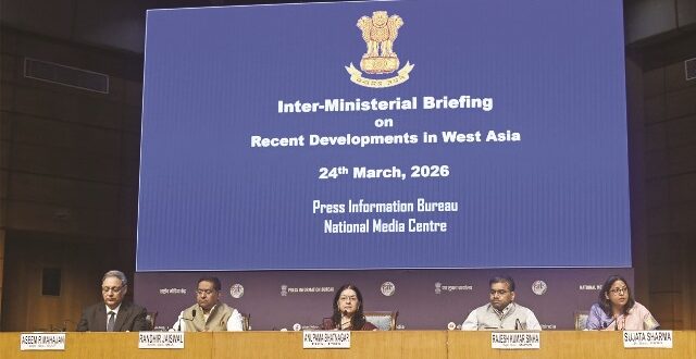 नई दिल्ली,24 मार्च 2026। पश्चिम एशिया में अमेरिका-इजरायल और ईरान में बीच जारी जंग एवं तेजी से बदलती परिस्थितियों पर भारत की पैनी नजर है और सरकार देश में ऊर्जा सुरक्षा सुनिश्चित करने के लिए स्रोतों की विविधता बढ़ाने के साथ ही खाड़ी देशों में फंसे भारतीय नागरिकों की वैकल्पिक मार्गों से सुरक्षित वापसी पर गंभीरता पूर्वक काम कर रही है। पश्चिम एशिया में हाल के घटनाक्रमों पर मंगलवार को अंतर-मंत्रालयी संवाददाता सम्मेलन में विदेश मंत्रालय के प्रवक्ता रणधीर जायसवाल ने कहा कि पश्चिम एशिया में जारी घटनाक्रम पर भारत सरकार लगातार नजर बनाए हुए है और ऊर्जा सुरक्षा के साथ-साथ भारतीय नागरिकों की सुरक्षित वापसी सर्वोच्च प्राथमिकता है। अब तक करीब सवा चार लाख भारतीय स्वदेश लौट चुके हैं। प्रवक्ता ने कहा कि विदेश मंत्री ने हाल ही में अमेरिकी विदेश मंत्री और श्रीलंका के अपने समकक्ष के साथ बातचीत कर क्षेत्रीय स्थिति, उसके वैश्विक अर्थव्यवस्था पर प्रभाव और ऊर्जा सुरक्षा के मुद्दों पर चर्चा की है।