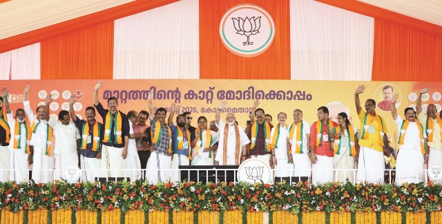 केरल में भाजपा और एनडीए की टीमें सरकार बनाने के लिए मैदान में उतर चुकी हैं। केरल की जनता के आशीर्वाद से हम यहां सरकार बनाएंगे। एनडीए का लक्ष्य लोगों के सपनों को साकार करना है। हमने केंद्र में रहते हुए भी केरल के विकास का पूरा प्रयास किया है। अगर राज्य में भाजपा सरकार आई तो इनके सारे घोटालों की जांच कराई जाएगी और केरल की जनता को न्याय दिलाएगी। पीएम ने कहा, केरल में बनने वाली एनडीए सरकार राज्य का तेज विकास करेगी और यह ‘मोदी की गारंटी’ है।