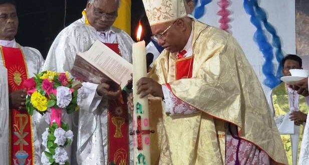 अम्बिकापुर,05 अप्रैल 2026 (घटती-घटना)। पास्का जागरण अंधकार पर प्रकाश का,मृत्यु पर जीवन का शैतान पर ईश्वर की विजय का सबसे बड़ा उत्सव है। सदियों से यह परंपरा निरंतर चली आ रही है। दुनिया के लिए जहां से शांति का संदेश निकला आज वही जगह अशांत है इजराइल के येरूसलम में भयंकर युद्ध छिड़ा हुआ है राजनीतिक अस्थिरता से विश्वासियों में भय का वातावरण बना हुआ है। दुर्भाग्यजनक बात यह है कि इस वर्ष जैतून पहाड़ से येरूसलम शहर में खजूर की डालियां हांथ में लेकर निकलने वाला परम्परागत जुलूस भी नहीं निकल सका। उक्त बातें सरगुजा धर्मप्रांत के धर्माध्यक्ष बिशप अंतोनिस बड़ा ने प्रभु ईशा के मृत्यु पर विजय के पर्व ईस्टर की पूर्व संध्या पर नवापारा स्थित बेदाग इश्माता महा गिरिजाघर में समुदाय को संबोधित करते हुए अपने संदेश में कही। चर्च परिसर में शनिवार रात 10 बजे से विशेष प्रार्थना प्रारम्भ हुई और देर रात तक यह कार्यक्रम चलता रहा। पूण्य शनिवार की रात 10 बजे पास्का मोमबत्ती के आशीष के बाद समुदाय द्वारा घरों लाई हुई मोमबत्तियां पास्का मोमबत्ती से प्रज्ज्वलित कर समस्त धर्म विधियां प्रारंभ हुई।