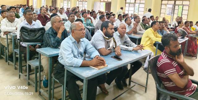 अम्बिकापुर,06 अप्रैल 2026 (घटती-घटना)। छत्तीसगढ़ माध्यमिक शिक्षा मंडल द्वारा संचालित हायर सेकेंडरी मुख्य परीक्षा 2026 के तहत हिन्दी विषय की परीक्षा अब 10 अप्रैल को पुनः आयोजित की जाएगी। मंडल के निर्देश पर सोमवार को अंबिकापुर स्थित शासकीय बहुउद्देशीय उच्चतर माध्यमिक विद्यालय के हॉल में सभी केंद्राध्यक्ष और सहायक केंद्राध्यक्षों की बैठक आयोजित की गई। बैठक में सरगुजा जिले के 71 परीक्षा केंद्रों के केंद्राध्यक्ष,सहायक केंद्राध्यक्ष तथा परिवहन कार्य में लगे जिला स्तरीय अधिकारी उपस्थित रहे। जिला शिक्षा अधिकारी डॉ. दिनेश कुमार झा ने मंडल से प्राप्त पीपीटी के आधार पर परीक्षा संचालन से जुड़े आवश्यक दिशा-निर्देश दिए। बैठक में मास्टर ट्रेनर के रूप में शासकीय हाई स्कूल सेदम के प्राचार्य रविशंकर पाण्डेय और शासकीय उच्चतर माध्यमिक विद्यालय मणिपुरवार्ड के प्राचार्य एलपी गुप्ता ने केंद्राध्यक्षों व सहायक केंद्राध्यक्षों को परीक्षा संचालन की विस्तृत ट्रेनिंग दी। बैठक में यह भी जानकारी दी गई कि परीक्षा के बाद 13 अप्रैल से मूल्यांकन कार्य प्रारंभ होगा,जिसे दो दिनों के भीतर पूरा करना है। इसके लिए सभी हायर सेकेंडरी स्कूलों के प्राचार्यों को निर्देश दिया गया है कि हिन्दी विषय के शिक्षकों को तत्काल मूल्यांकन केंद्र के लिए कार्यमुक्त करें।