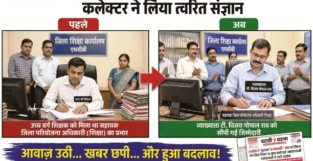 दैनिक घटती-घटना में इस पूरे मामले को प्रमुखता से प्रकाशित किया गया, जिसमें ‘सुशासन या मनमानी’ जैसे सवाल उठाए गए थे,खबर सामने आने के बाद शिक्षा विभाग में हलचल तेज हो गई और मामला जिला प्रशासन तक पहुंचा,सूत्रों के अनुसार, खबर के बाद लगातार अधिकारियों के बीच चर्चा हुई और स्थिति की गंभीरता को देखते हुए कलेक्टर ने हस्तक्षेप किया।