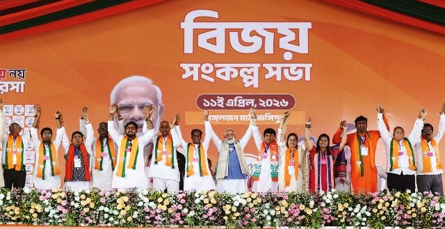 कोलकाता,11 अप्रैल 2026। प्रधानमंत्री नरेंद्र मोदी ने शनिवार को पश्चिम बंगाल के पूर्व वर्धमान जिले के कटवा और मुर्शिदाबाद के जंगीपुर में चुनावी रैलियों को संबोधित किया। पीएम ने पूर्व वर्धमान में कहा…बंगाल बदलाव के लिए तैयार है। मोदी की गांरटी टीएमसी की निर्मम सरकार के भय राज को हटाके भरोसे में बदलने की है। मुर्शिदाबाद में मोदी ने कहा- आजादी के बाद से, बंगाल को चुनौती देने की हिम्मत करने वाले हर व्यक्ति का अहंकार चकनाचूर हो गया है। पहले अंग्रेजों का, फिर कांग्रेस का,और अंत में वामपंथियों का अहंकार भी चकनाचूर हो गया। अब बंगाल की जनता टीएमसी के अहंकार को चकनाचूर कर देगी। मोदी ने कहा…बंगाल की जनता ने मां,माटि और मानुश के नारे से प्रेरित होकर,बहुत आशा और उमंग के साथ टीएमसी को एक मौका दिया लेकिन सत्ता में आते ही टीएमसी वामपंथियों की कॉर्बन कॉपी बन गई। प्रधानमंत्री ने कहा… वामपंथियों से जुड़े सभी गुंडे और गिरोह तृणमूल में शामिल हो गए हैं। टीएमसी ने अब हर चीज का जिम्मा अपने हाथ में ले लिया है.. हथियारों,नशीले पदार्थों और मवेशियों की तस्करी से लेकर उन कटौतियों और कमीशनों तक, जो कभी वामपंथियों की पहचान हुआ करती थीं।