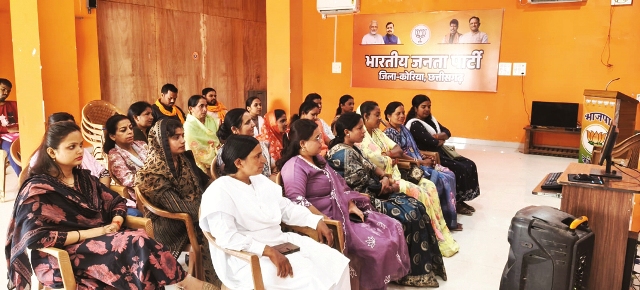 बैकुंठपुर में भाजपा महिला मोर्चा ने सुना पीएम का संबोधन,महिलाओं की भागीदारी को बताया ऐतिहासिक अवसर