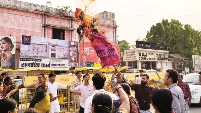 मंत्री लक्ष्मी राजवाड़े का पुतला फूंका