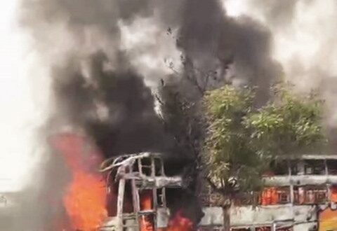 कर्नाटक,17 अप्रैल 2026। कर्नाटक के यादगिरि जिले के सुरपुर तालुक के देवापुर के पास कार और निजी बस के बीच हुई टक्कर में एक ही परिवार के छह लोगों की मौके पर ही मौत हो गई। कार यादगिरि से रायचूर और कार और बेंगलुरु से कलबुर्गी जा रही थी। टक्कर के बाद कार और बस दोनों में आग लग गई। मौके पर पहुंची अग्निशमन दल की टीम ने आग पर काबू पाया। मृतकों की पहचान रायचूर जिले के सिरवार कस्बे के निवासी काउंसलर कृष्णा नायक (50),उनकी पत्नी अनंत कला (45), शरणप्पा (36),उनकी पत्नी निसर्गा (30),पुत्र सिद्धार्थ (3) और शशिकला (30) के रूप में हुई है। यह सभी कार सवार हैं। बताया जा रहा है कि अमावस्या के अवसर पर वेणुगोपाल मंदिर के दर्शन कर लौटते समय यह हादसा हुआ। इस हादसे में कार सवार अथ्विक (5) और एक वर्षीय श्रीनिधि चमत्कारिक रूप से बच गए। दोनों की हालत गंभीर है। उन्हें यादगिरि के यिम्स अस्पताल में भर्ती कराया गया है। यादगिरि के पुलिस अधीक्षक पृथ्विक शंकर ने बताया कि कार में एक ही परिवार के आठ लोग सवार थे, जिनमें से छह की मौके पर ही मौत हो गई, जबकि दो बच्चे घायल हो गए। कार के ओवरटेक करने की कोशिश में यह हादसा हुआ। टक्कर के बाद बस कार को करीब 50 मीटर तक घसीटते हुए ले गई। इस संबंध में सुरपुर पुलिस थाने में मामला दर्ज किया गया है।