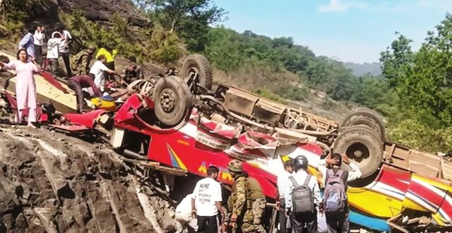 उधमपुर,21 अप्रैल 2026। जम्मू के उधमपुर में सोमवार सुबह एक बस हादसे का शिकार हो गई। रामनगर से आ रही बस कगोत के पास सड़क से करीब 100 मीटर नीचे गिरकर पलट गई। इस हादसे में 21 लोगों की मौत हो गई, जबकि 29 से ज्यादा यात्री घायल हो गए। हादसा सुबह करीब 10 बजे हुआ। बस में 50 यात्री सवार थे,जिनमें से ज्यादातर लोग रामनगर से उधमपुर में अपने रोजाना के काम पर जा रहे थे। 15 यात्रियों की मौके पर ही मौत हो गई थी, जबकि बाकी 6 लोगों ने इलाज के दौरान दम तोड़ दिया। घायलों के मुताबिक बस ओवरलोड थी,रफ्तार भी तेज थी। कगोत नाले के पास अचानक बस का टायर फट गया। इससे ड्राइवर उसे कंट्रोल नहीं कर सका। और बस सड़क से नीचे गिर गई। हादसे में बस का ऊपरी हिस्सा पूरी तरह नष्ट हो गया है। केंद्रीय मंत्री डॉ. जितेंद्र सिंह ने सोशल मीडिया पर एक पोस्ट पर बताया कि हादसे का शिकार हुई बस पब्लिक ट्रांसपोर्ट की थी। घायलों का इलाज जीएमसी ऊधमपुर में किया जा रहा है।