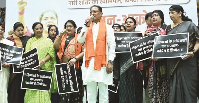लोकसभा में महिला आरक्षण बिल पास नहीं होने के विरोध में भारतीय जनता पार्टी ने आज राजधानी रायपुर में विशाल ‘आक्रोश रैली’ निकाली। भाजपा महिला मोर्चा के नेतृत्व में आयोजित इस रैली में मुख्यमंत्री विष्णुदेव साय समेत पार्टी के दिग्गज नेता और हजारों की संख्या में महिला कार्यकर्ता शामिल हुईं। ‘जन आक्रोश महिला सम्मेलन’ में सीएम साय ने घोषणा की कि इस मुद्दे पर विपक्ष के अडि़यल रुख के खिलाफ छत्तीसगढ़ विधानसभा का विशेष सत्र बुलाया जाएगा और सदन में निंदा प्रस्ताव पारित किया जाएगा। मुख्यमंत्री विष्णुदेव साय ने रैली के समापन पर कड़े शब्दों में कहा कि प्रधानमंत्री नरेंद्र मोदी लगातार महिलाओं के उत्थान के लिए निर्णय ले रहे हैं, लेकिन कांग्रेस और अन्य विपक्षी दलों ने इस महत्वपूर्ण विधेयक को पास नहीं होने दिया। उन्होंने स्पष्ट किया कि छत्तीसगढ़ की माताएं और बहनें इस अपमान से आक्रोशित हैं, जिसका जवाब विधानसभा के विशेष सत्र में निंदा प्रस्ताव के जरिए दिया जाएगा। यह रैली छत्तीसगढ़ में महिला वोट बैंक को साधने और आरक्षण के मुद्दे पर कांग्रेस को रक्षात्मक स्थिति में लाने की बड़ी राजनीतिक कोशिश है। आगामी चुनावों से पहले ‘नारी शक्ति’ के अपमान को मुद्दा बनाकर बीजेपी प्रदेश के बड़े वर्ग को अपने पाले में करने की रणनीति पर काम कर रही है।