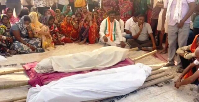 अल्ट्राटेक सीमेंट कंपनी के सामने शव रखकर परिजनों ने किया प्रदर्शन