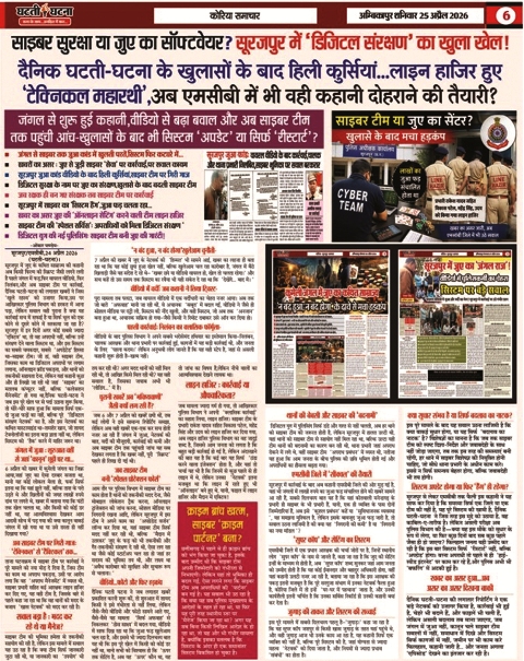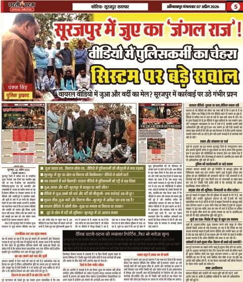 सूरजपुर 25 अप्रैल 2026 (घटती-घटना)। सूरजपुर जिले में कथित जुआ नेटवर्क और उसे मिले संरक्षण को लेकर पिछले कुछ दिनों से जो घटनाक्रम सामने आ रहा था, वह अब निर्णायक मोड़ पर पहुंचता दिखाई दे रहा है, दैनिक घटती-घटना द्वारा लगातार प्रकाशित खबरों, साक्ष्यों और वायरल वीडियो के बाद पुलिस विभाग ने आखिरकार सख्त रुख अपनाया है, पहले संबंधित कर्मियों को लाइन हाजिर किया गया और अब उन्हें जिले से बाहर स्थानांतरित कर दिया गया है, सरगुजा रेंज के पुलिस महानिरीक्षक के निर्देश पर हुई इस कार्रवाई को न केवल प्रशासनिक कदम, बल्कि पुलिस व्यवस्था की छवि सुधारने की दिशा में उठाया गया बड़ा फैसला माना जा रहा है, हालांकि, पूरे मामले में अभी भी कई सवाल बाकी हैं और जांच का दायरा आगे बढ़ने की संभावना जताई जा रही है। बता दे की सूरजपुर के चर्चित जुआ प्रकरण में जहां तीन पुलिसकर्मियों का तबादला कर प्रशासन ने सख्ती का संदेश दिया है, वहीं इस पूरे मामले में दो नाम अब भी चर्चा के केंद्र में हैं विकास पटेल और महेंद्र सिंह। ये दोनों फिलहाल आधिकारिक तबादला सूची से बाहर हैं, लेकिन स्थानीय स्तर पर इन्हें भी इस पूरे नेटवर्क से जुड़ा बताया जा रहा है, ऐसे में सबसे बड़ा सवाल यही उठ रहा है कि जब कार्रवाई शुरू हो चुकी है, तो इन नामों पर निर्णय कब लिया जाएगा, सूत्रों की मानें तो इन दोनों के नाम पहले से ही खबरों और चर्चाओं में रहे हैं, इसके बावजूद सूची में शामिल न होना कई तरह की अटकलों को जन्म दे रहा है, हालांकि विभागीय स्तर पर यह भी कहा जा रहा है कि कार्रवाई चरणबद्ध तरीके से हो रही है और आगे सूची का विस्तार संभव है, यही वजह है कि इस पूरे मामले को लेकर अब यह कहा जाने लगा है—‘पिक्चर अभी बाकी है।’ महेंद्र सिंह को लेकर एक और पहलू चर्चा में है, वह उनकी कथित राजनीतिक पकड़, लेकिन जिस तरह से इस मामले में उच्च अधिकारियों ने संज्ञान लेकर सख्त रुख अपनाया है, उससे यह संकेत मिल रहा है कि अब किसी प्रकार का संरक्षण मिलना आसान नहीं होगा, पुलिस की छवि को लेकर जो सवाल खड़े हुए हैं,उन्हें देखते हुए अब निष्पक्ष कार्रवाई की अपेक्षा बढ़ गई है, ऐसे में माना जा रहा है कि यदि जांच में इनकी संलिप्तता सामने आती है, तो इन दोनों का भी जिले से बाहर जाना तय हो सकता है, फिलहाल भले ही ये नाम सूची से बाहर हों, लेकिन नजरें अब अगली कार्रवाई पर टिकी हुई हैं।