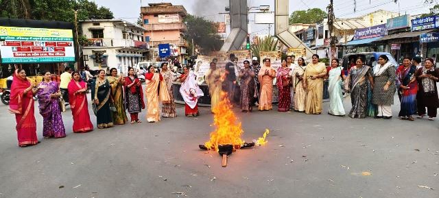 अम्बिकापुर,27 अप्रैल 2026 (घटती-घटना)। भाजपा प्रदेश नेतृत्व के आह्वान पर सोमवार शाम संकल्प भवन स्थित भाजपा कार्यालय अंबिकापुर में जन आक्रोश महिला सम्मेलन आयोजित किया गया। कार्यक्रम में महापौर मंजूषा भगत, जिला पंचायत अध्यक्ष निरूपा सिंह तथा प्रदेश प्रभारी दिव्या सिंह सिसोदिया विशेष रूप से उपस्थित रहीं। सम्मेलन के बाद भाजपा महिला मोर्चा जिला अध्यक्ष शुभांगी बिहाडे के नेतृत्व में स्थानीय घड़ी चौक पर नारी शक्ति वंदन संशोधन विधेयक का विरोध करने का आरोप लगाते हुए राहुल गांधी का पुतला दहन कर विरोध प्रदर्शन किया गया। महापौर मंजूषा भगत ने कहा कि नारी शक्ति वंदन विधेयक महिलाओं को सशक्त बनाने की दिशा में ऐतिहासिक कदम है और इसका विरोध महिलाओं के सम्मान का अपमान है। उन्होंने कहा कि भाजपा महिलाओं के अधिकारों की रक्षा के लिए सदैव प्रतिबद्ध है। जिला पंचायत अध्यक्ष निरूपा सिंह ने कहा कि यह विधेयक महिलाओं को विधायिका में 33 प्रतिशत आरक्षण देकर सशक्त करेगा। उन्होंने आरोप लगाया कि कांग्रेस का विरोध महिलाओं के अधिकारों पर प्रहार है। प्रदेश प्रभारी दिव्या सिंह सिसोदिया ने कहा कि जन आक्रोश महिला सम्मेलन के माध्यम से भाजपा महिला मोर्चा महिलाओं के सम्मान के लिए आवाज बुलंद कर रहा है। जिला अध्यक्ष शुभांगी बिहाडे ने कहा कि भाजपा महिला मोर्चा संगठन इस विधेयक के समर्थन में एकजुट है और पुतला दहन के माध्यम से स्पष्ट संदेश दिया गया है कि महिलाओं का अपमान बर्दाश्त नहीं किया जाएगा। कार्यक्रम का संचालन प्रियंका चौबे एवं नीलू गुप्ता ने किया। इस दौरान बड़ी संख्या में महिला मोर्चा पदाधिकारी, जनप्रतिनिधि और कार्यकर्ता उपस्थित रहे।
