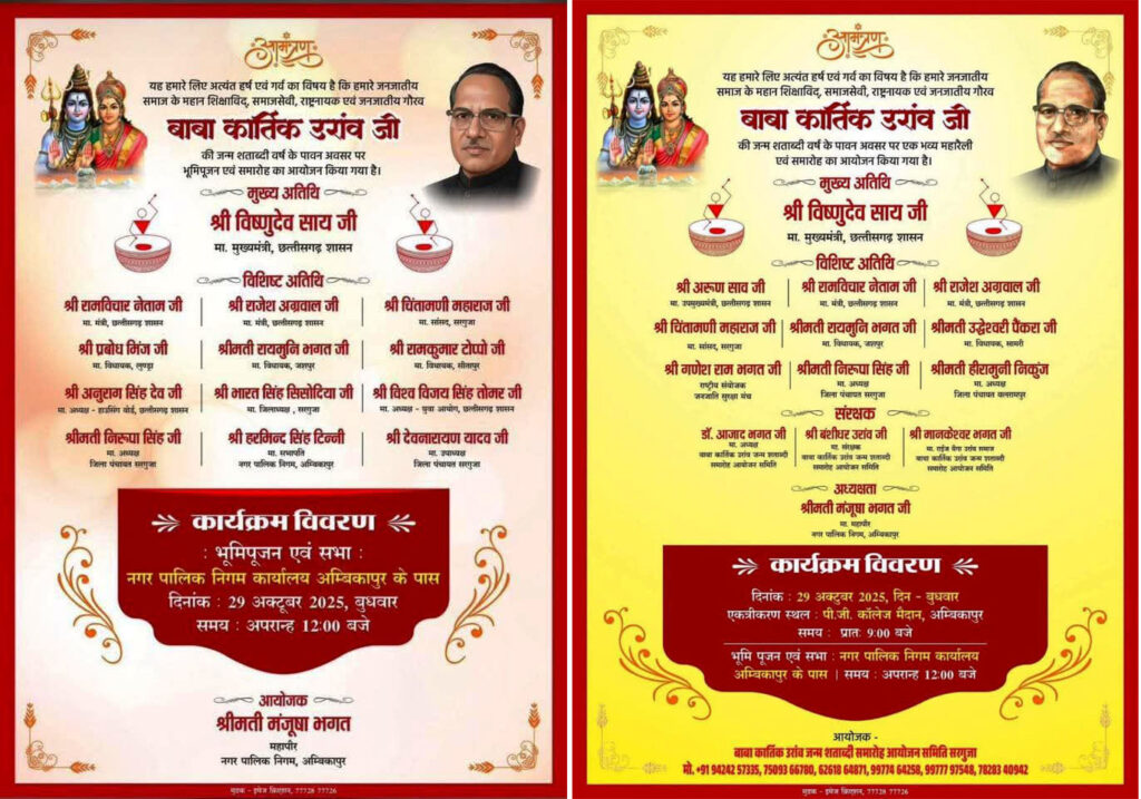 समाज के प्रतिनिधि पहले आमंत्रण पत्र से हुए गायब विरोध के बाद पुनः छपा आमंत्रण पत्र