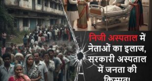 भरोसा टूट गयाःजो अस्पताल नेता नहीं जाते,वहाँ जनता क्यों जाए?सरकारी अस्पताल जनता के लिए… नेता VIP वार्ड में! दोहरा सिस्टम उजागरलोग पूछ रहे हैं: जब नेता को सरकारी अस्पताल पर भरोसा नहीं, तो जनता क्यों करे?जनता सरकारी अस्पताल में लाइन में, नेता निजी अस्पताल में आराम से: बेहद शर्मनाक!सरकारी सुविधाओं का भाषण, लेकिन इलाज निजी में नेताओं की दोहरी नीति …