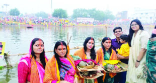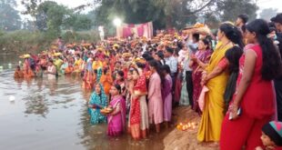 अम्बिकापुर@अस्ताचलगामी सूर्य को अर्घ्य देने उमड़ी श्रद्धालुओं की भीड़