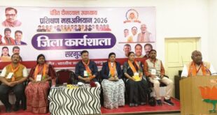 -संवाददाता-अम्बिकापुर,21 फरवरी 2026 (घटती-घटना)। भारतीय जनता पार्टी की जिला कार्यशाला का आयोजन शनिवार को संकल्प भवन स्थित भाजपा कार्यालय में किया गया। बूथ, मंडल और जिला स्तर पर प्रस्तावित प्रशिक्षण वर्गों की तैयारी को लेकर आयोजित इस कार्यशाला में अपेक्षित पदाधिकारियों की उपस्थिति रही। कार्यक्रम में कुल पाँच सत्र आयोजित किए गए। कार्यशाला की अध्यक्षता सरगुजा सांसद चिंतामणि महाराज ने …
