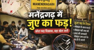 दोहरी रणनीति,बदलते ठिकाने और संदिग्ध संरक्षण-संगठित जुआ नेटवर्क पर गंभीर सवाल,आईजी सरगुजा के लिए बढ़ी चुनौती छोटा फड़ दिखावा,बड़ा खेल जारी—मनेंद्रगढ़ में संगठित जुए का खुलासा सूरजपुर के बाद अब एमसीबी निशाने पर…मनेंद्रगढ़ बना जुए का हब लोकेशन बदल-बदल कर चल रहा जुआ,पुलिस की भूमिका पर उठे सवाल जुए का ‘डबल गेम’ः कार्रवाई कहीं,असली फड़ कहीं और… सूरजपुर से खदेड़ा …